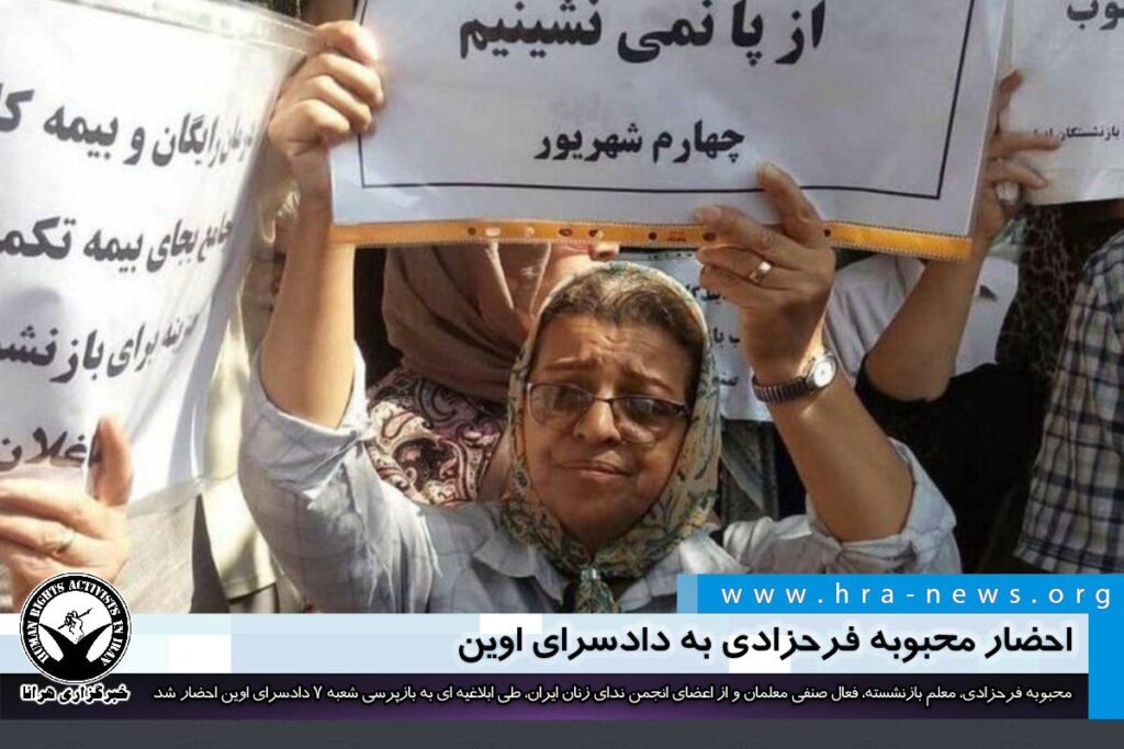 احضار محبوبه فرحزادی به دادسرای اوین – خبرگزاری هرانا 4 years ago You must be logged into the site to view this content.