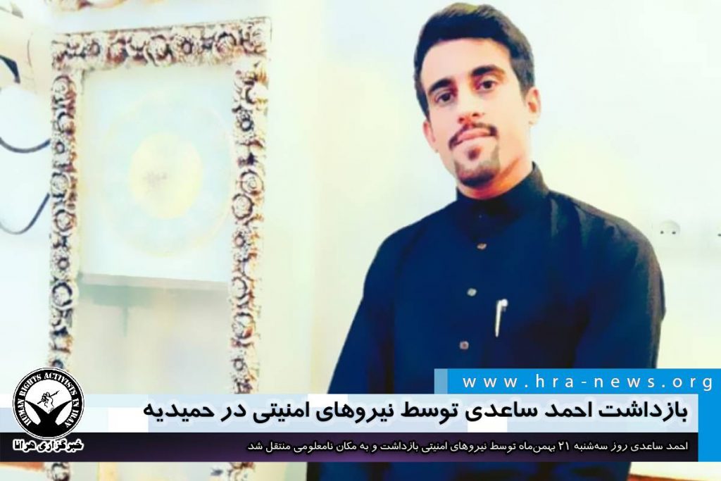 بازداشت احمد ساعدی توسط نیروهای امنیتی در حمیدیه – خبرگزاری هرانا 5 years ago امروز چهارشنبه ۲۲ بهمن ۱۳۹۹, 10th of February 2021