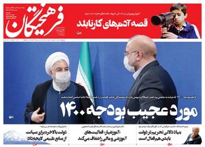 عکس/ صفحه نخست روزنامههای چهارشنبه ۱۹ آذر مورد عجیب بودجه ۱۴۰۰ / آغاز جهانی واکسیناسیون کرونا / دستگیری سرپلهای اصلی شبکه شرطبندی / توده بدخیم ارز ۴۲۰۰ از جمله تیترهای روزنامههای صبح امروز است.