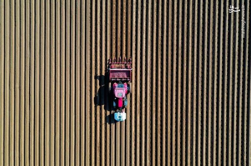 تصویر هوایی از زمین کاشت سیب زمینی 5 years ago یک کشاورز در کامبری، فرانسه سیب زمینی میکارد. عکس: Pascal Rossignol