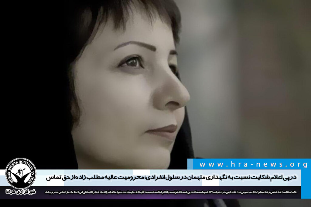 در پی اعلام شکایت نسبت به نگهداری متهمان در سلول انفرادی؛ محرومیت عالیه مطلب زاده از حق تماس…