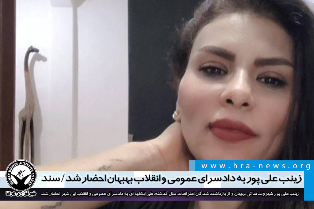 زینب علی پور به دادسرای عمومی و انقلاب بهبهان احضار شد/ سند – خبرگزاری هرانا 5 years ago You must be logged into the site to view this content.