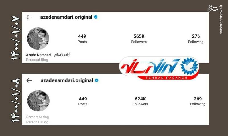 صفحه رسمی اینستاگرام “آزاده نامداری” قبل و بعد از فوت