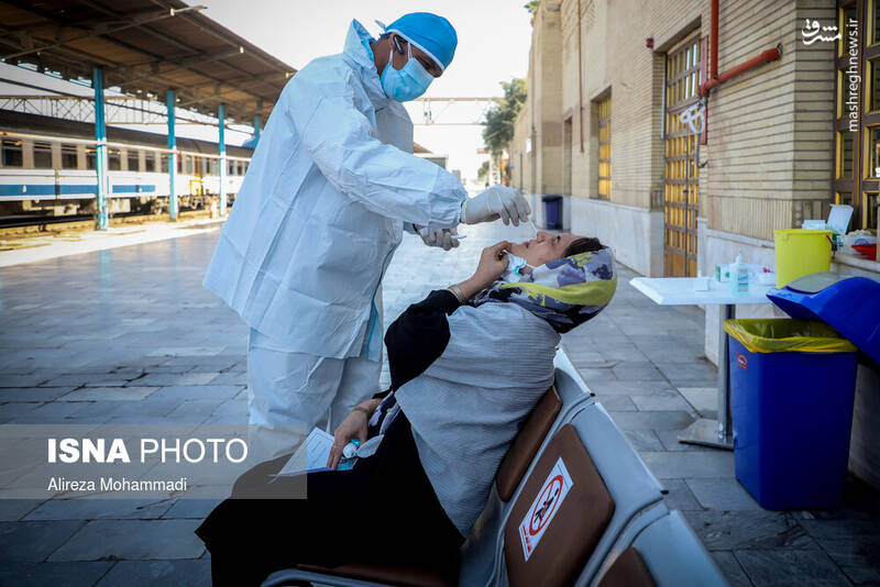 عکس/ انجام تست سریع کرونا در راهآهن اهواز