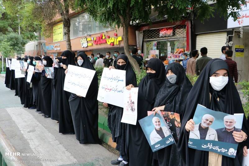 جمعی از مردم مشهد در مقابل دفتر نمایندگی وزارت امورخارجه شمال و شرق کشور تجمع کردند.مردم پس از تجمع، شعارهایی در حمایت از شهید حاج قاسم سلیمانی سر داده و توطئههای آمریکا اسرائیل را محکوم کردند.