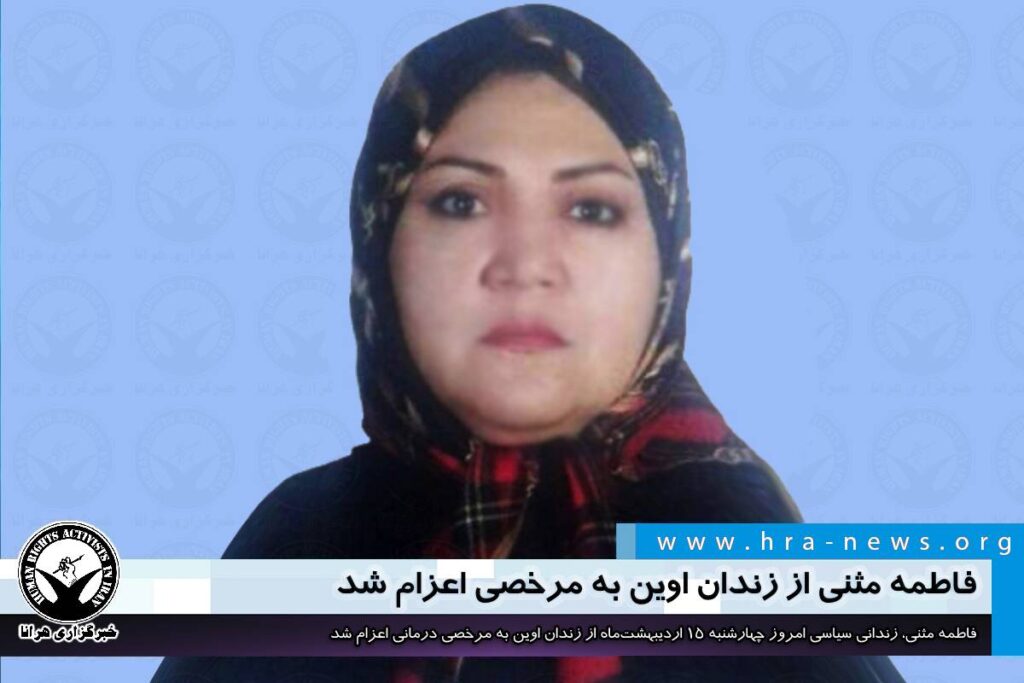 فاطمه مثنی از زندان اوین به مرخصی استعلاجی اعزام شد – خبرگزاری هرانا 4 years ago You must be logged into the site to view this content.