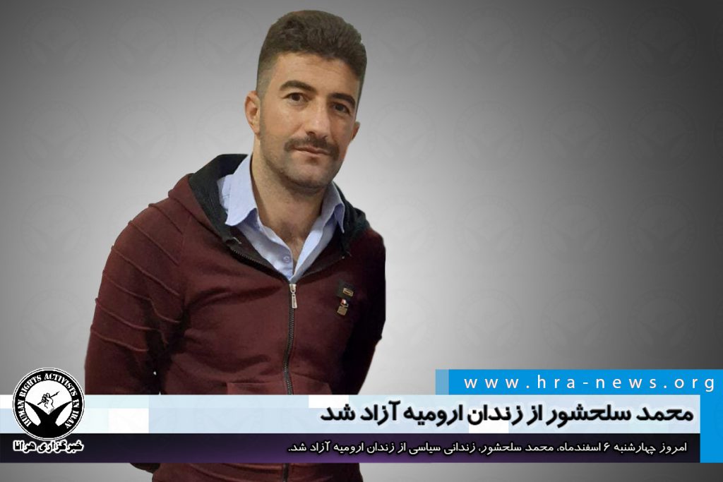 محمد سلحشور از زندان ارومیه آزاد شد – خبرگزاری هرانا 5 years ago امروز چهارشنبه ۶ اسفند ۱۳۹۹, 24th of February 2021 آخرين بروز رسانی در ۱۳۹۹/۱۲/۰۶ ساعت ۱۸:۲۴:۰۵