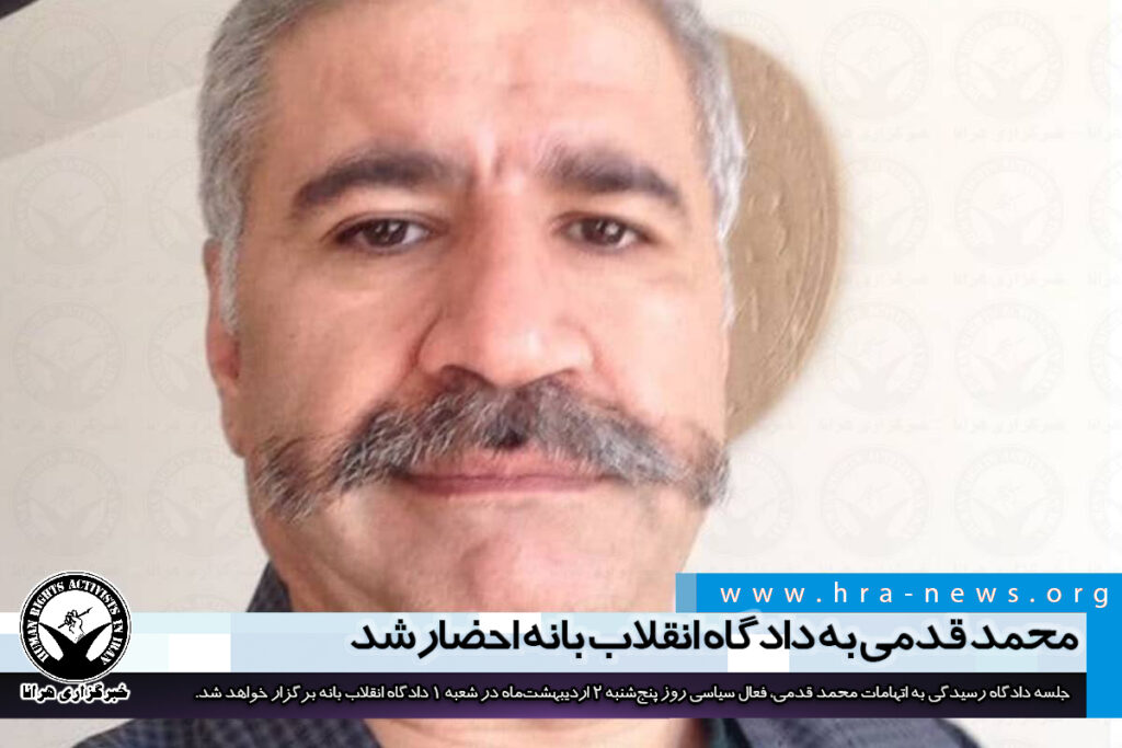 محمد قدمی به دادگاه انقلاب بانه احضار شد – خبرگزاری هرانا 5 years ago امروز چهارشنبه ۱ اردیبهشت ۱۴۰۰, 21st of April 2021 آخرين بروز رسانی در ۱۴۰۰/۰۲/۰۱ ساعت ۲۲:۵۶:۱۸